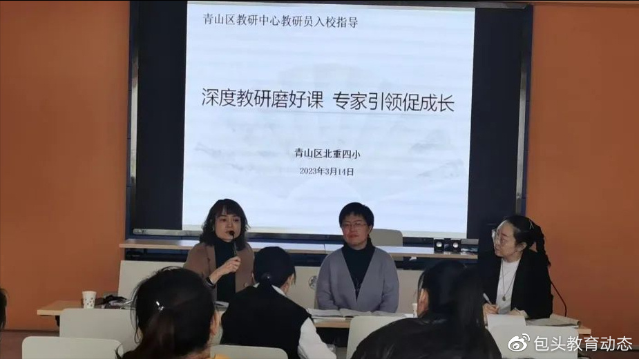 为加强北重四小教师队伍建设和青年教师培养,尤其是推动新进教师的成长,2023年3月7日北重四小在校长武建华、教学校长谭丽娜的带领下组织学校青年教师进行了教学、研讨、磨课活动。为了检验学校教研成果,2023年3月14日,青山区教育局教研中心教研员受邀入北重四小对语文学科、道德与法治学科进行了入校跟进指导工作,进一步明确了这两个学科校本教研的方向,提升了教师的教学理念,帮助教师抓准了研究要点,切实推进了课堂质量的提升。